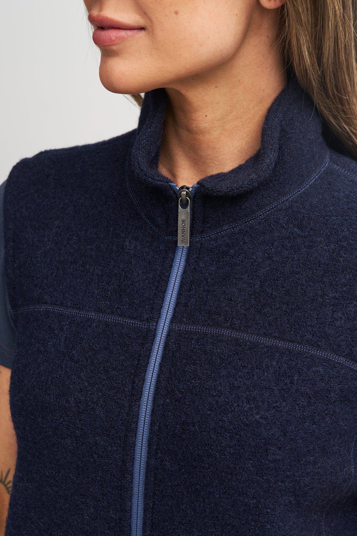 Kan man ha ett smidigare plagg på sig än en väst? Värmer skönt nacke, rygg och bål, men då ärmarna är fria får du en smidighet och rörlighet som är grym! Använd som ett ledigt plagg till vardags eller som ett värmande mellanlager. Ullens oslagbara funktion hjälper till att hålla en jämn kroppstemperatur. Tillverkad i ett 450g filtat ullmaterial stickat i 100% ull som är mulesingfri och med ett garn som är Bluesign® certifierat. Plagget är utvecklat och stickat i Ivanhoes egen fabrik i Gällstad. Denna modellen finns även som tröja och heter Beata full zip.