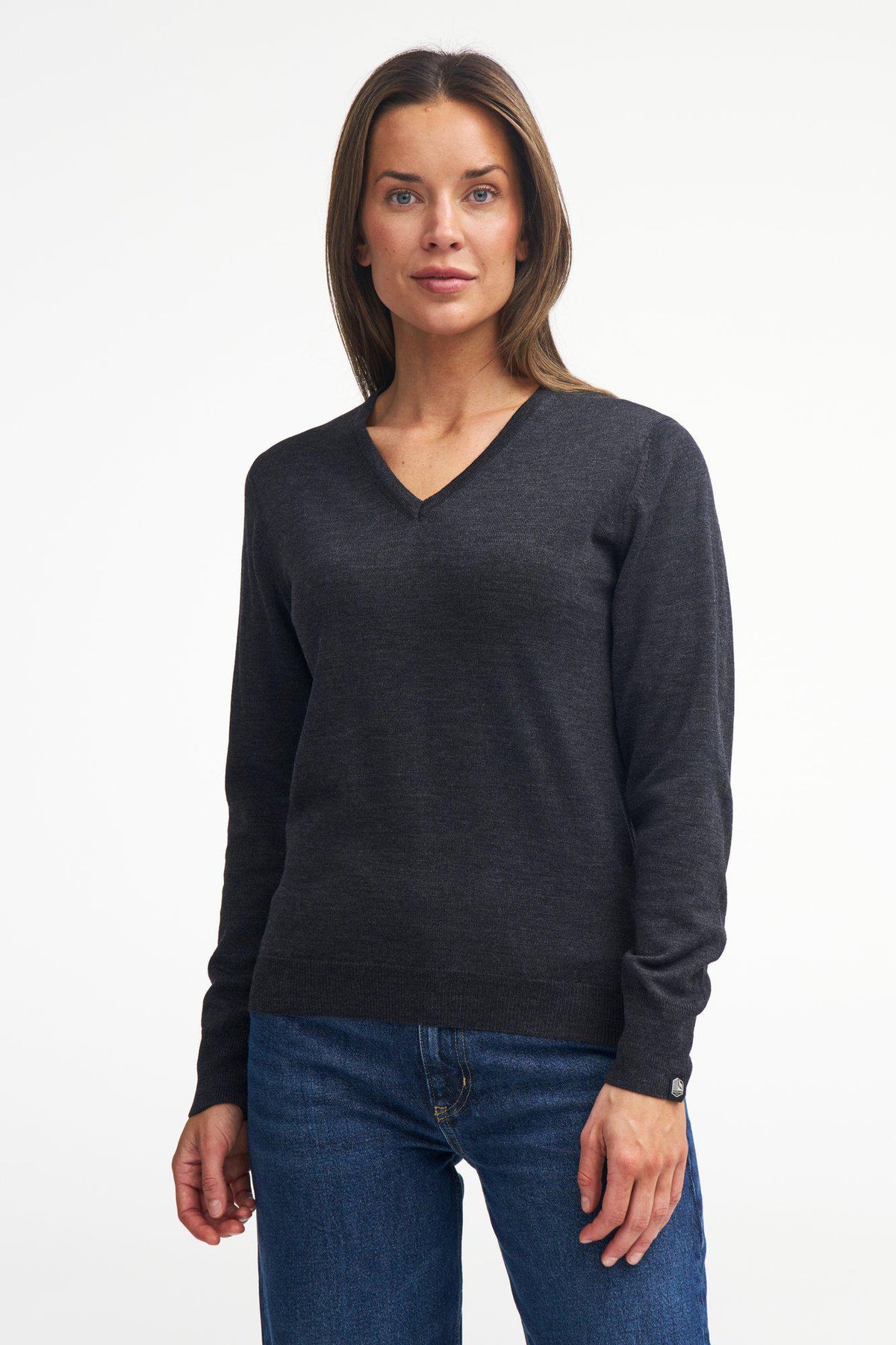 MERINO V-NECK FEMALE, 100% EXTRA FINE MERINOULL — STEELBLUE