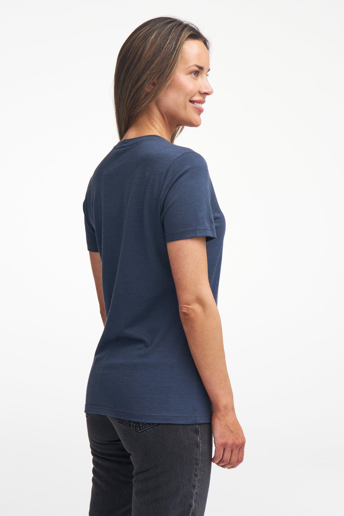 MERINO V-NECK FEMALE, 100% EXTRA FINE MERINOULL — STEELBLUE