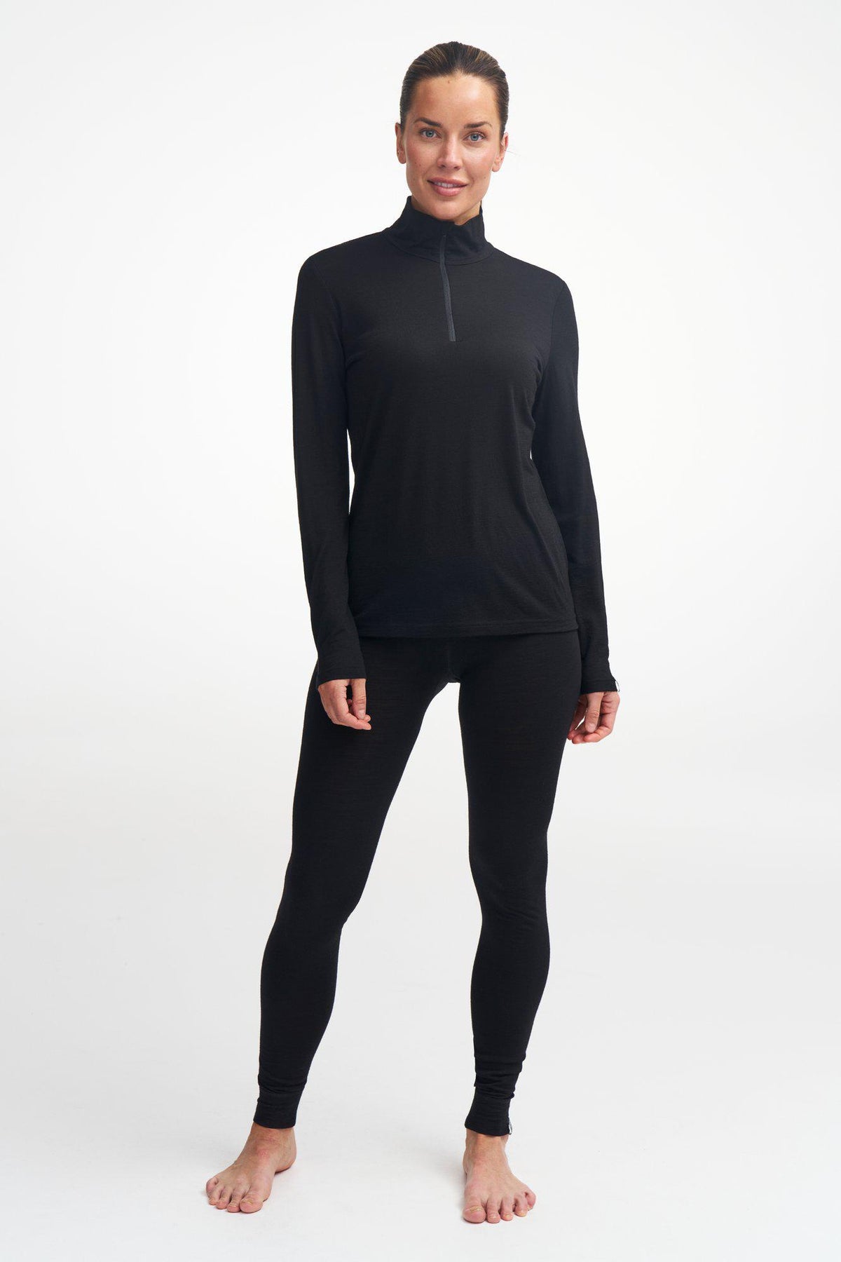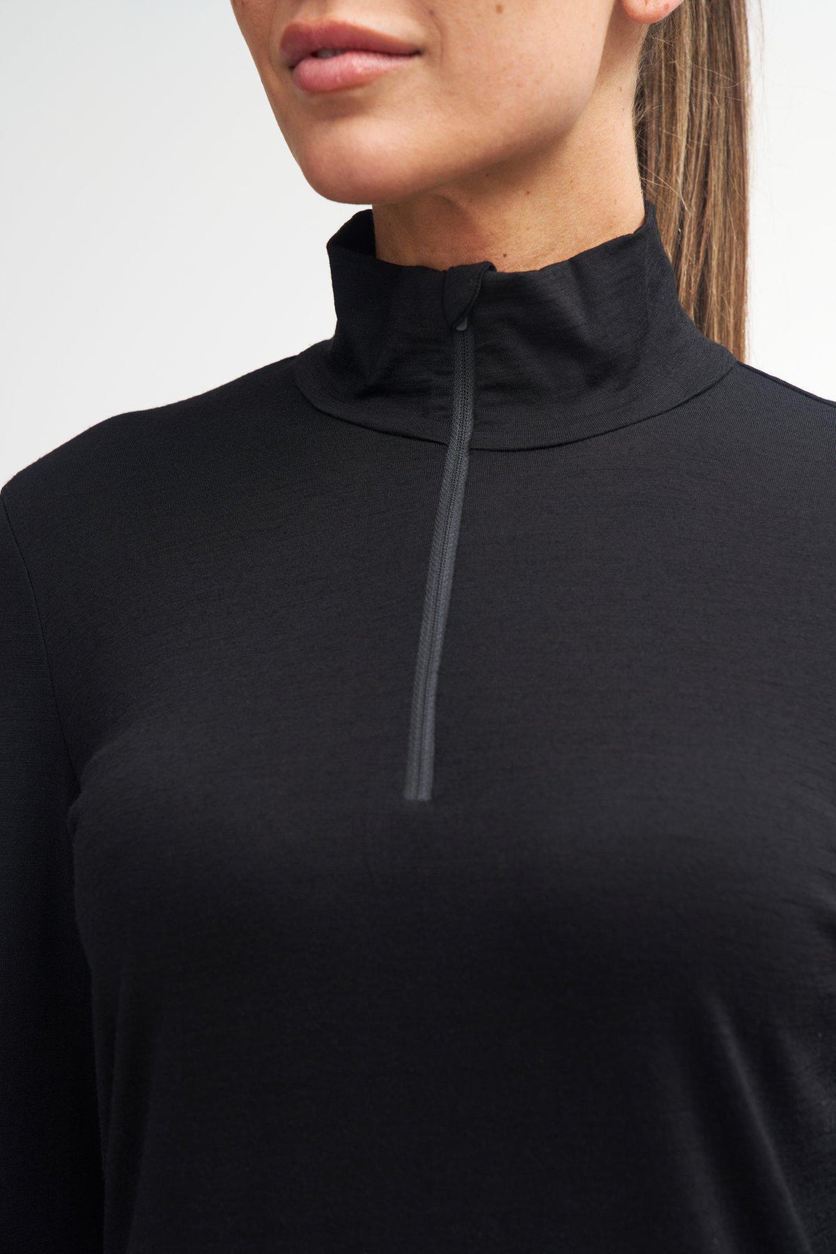 UNDERWOOL STELLA HALF ZIP, 100% EXTRA FINE MERINOULL — BLACK