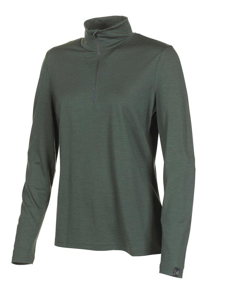 UNDERWOOL STELLA HALF ZIP, 100% EXTRA FINE MERINOULL — RIFLE GREEN