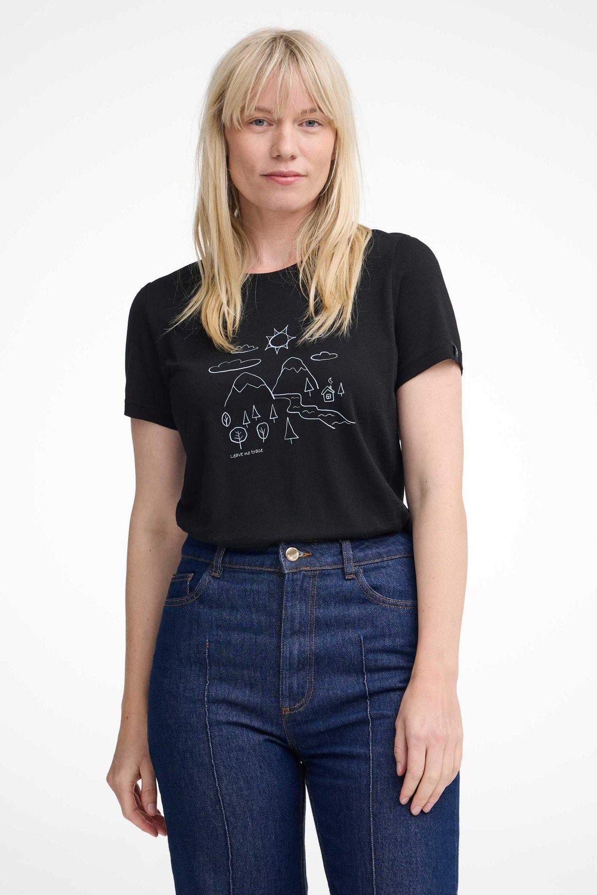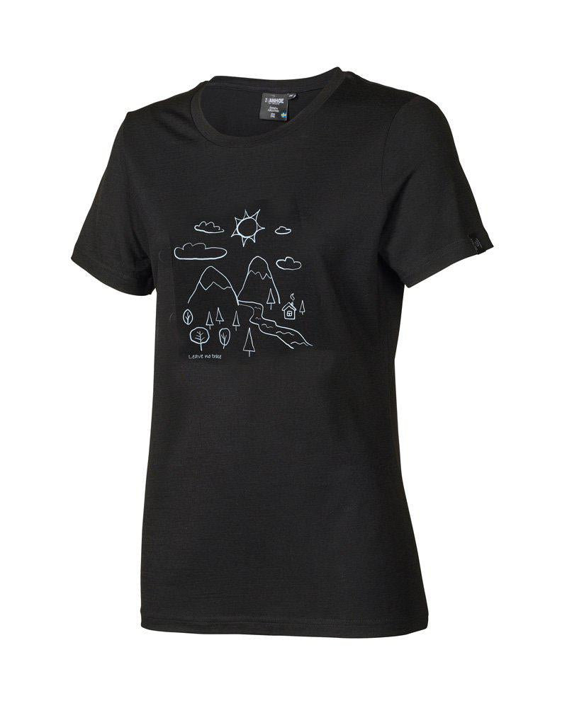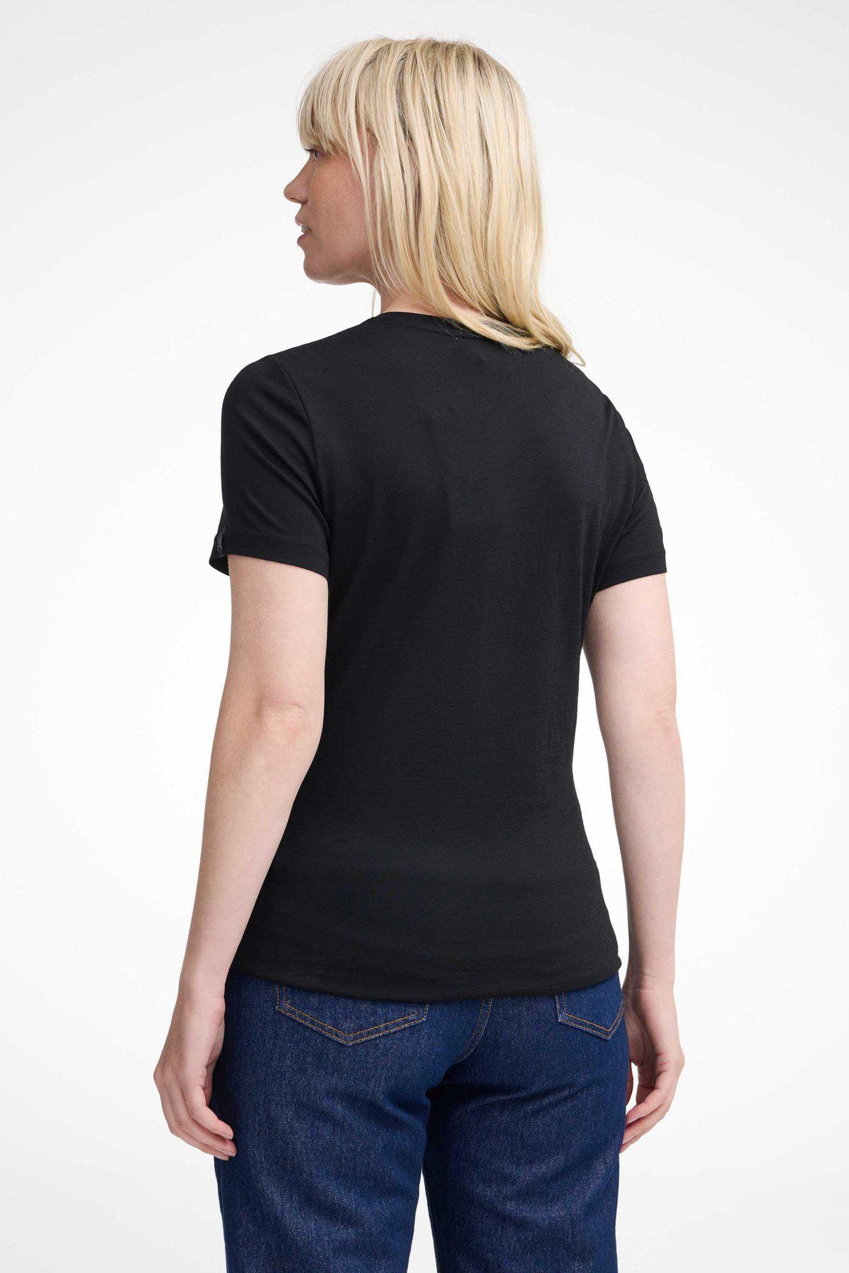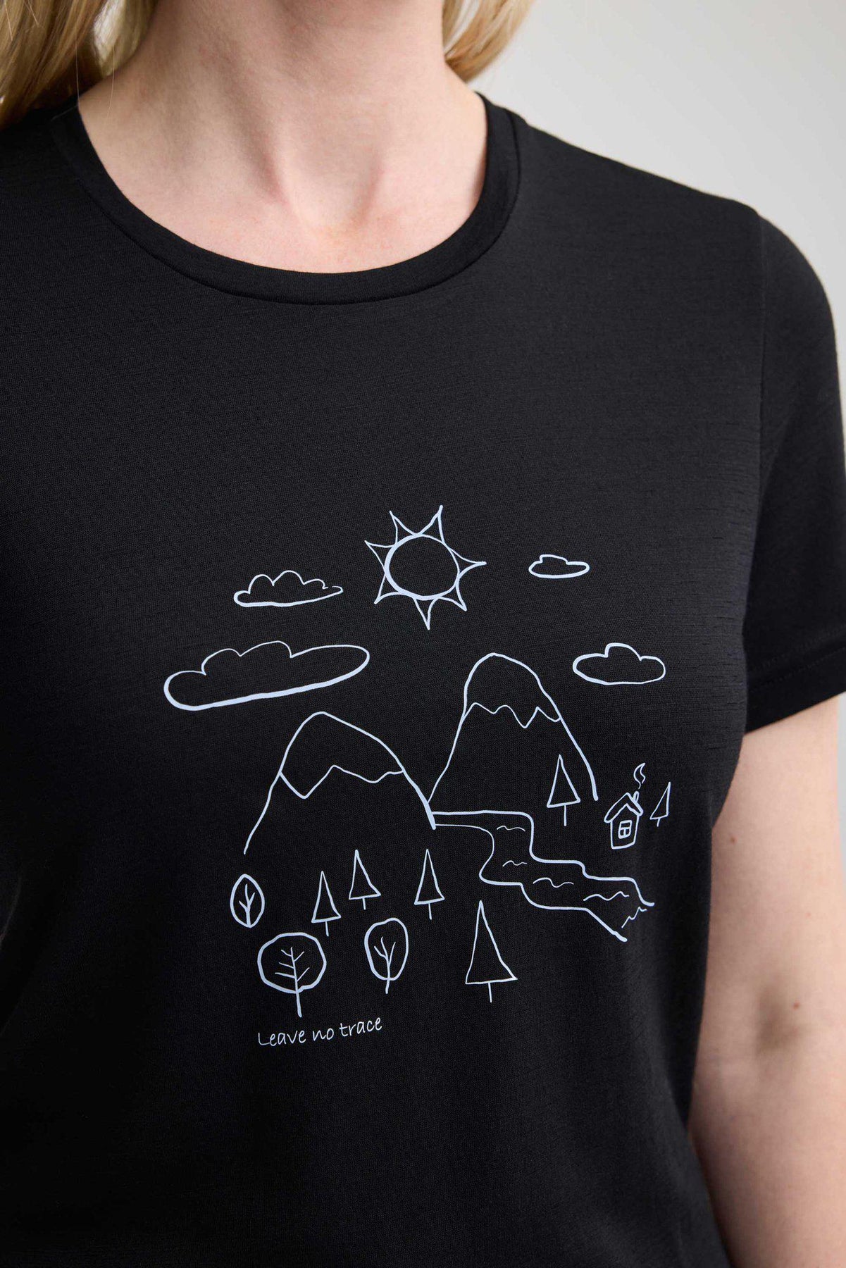 Cilla - en supermjuk T-shirt i ull med bra passform och klassiskt snitt i 100% extra fine merinoull, här med ett härligt tryck framtill. Ullkvalitén är supermjuk med ett microntal på 18,5, så de flesta kan bära den direkt mot huden uta problem. Liten logo badge på vänster ärm.