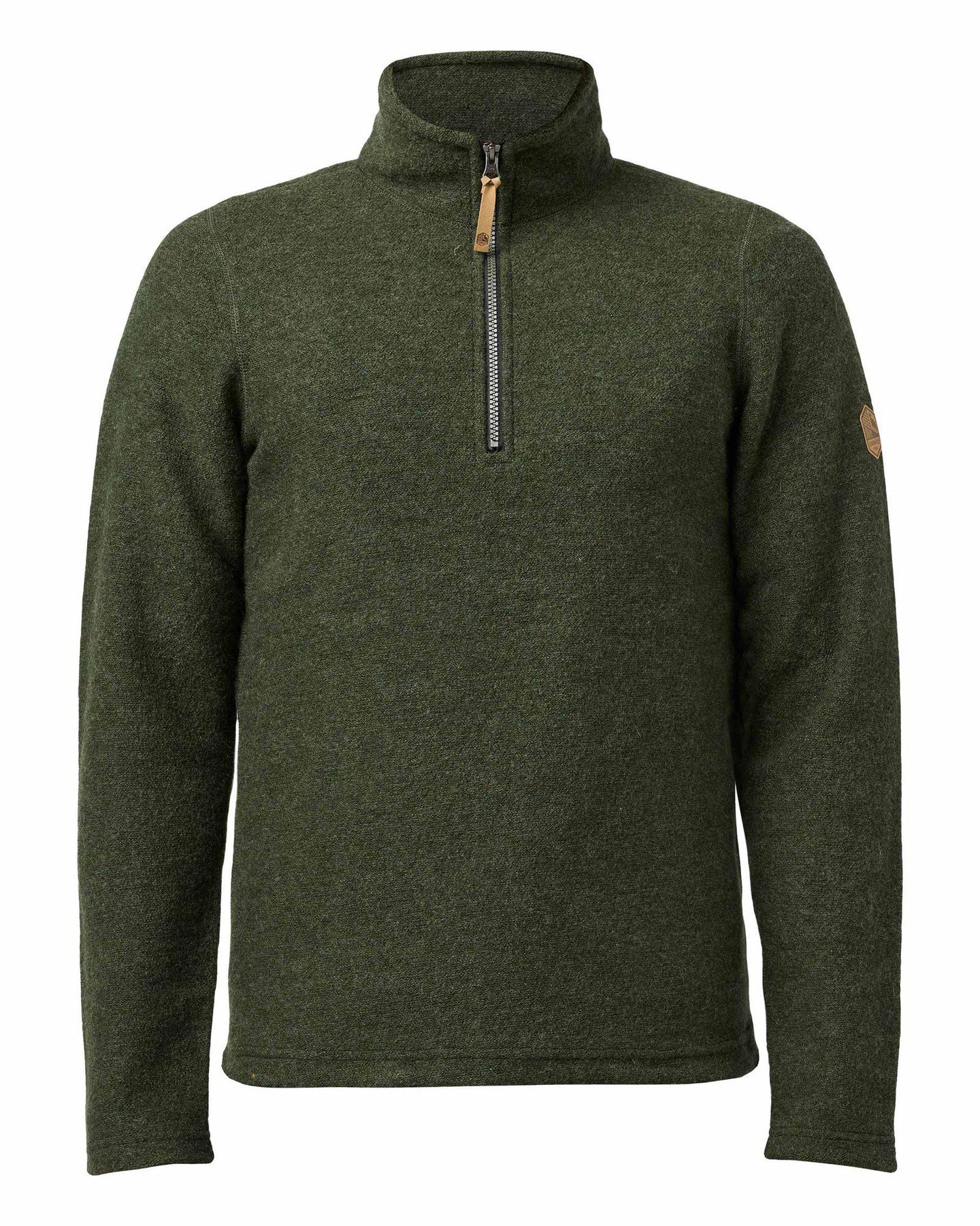 BRODAL HALF ZIP, 100% FILTAD ULL — LODEN GREEN