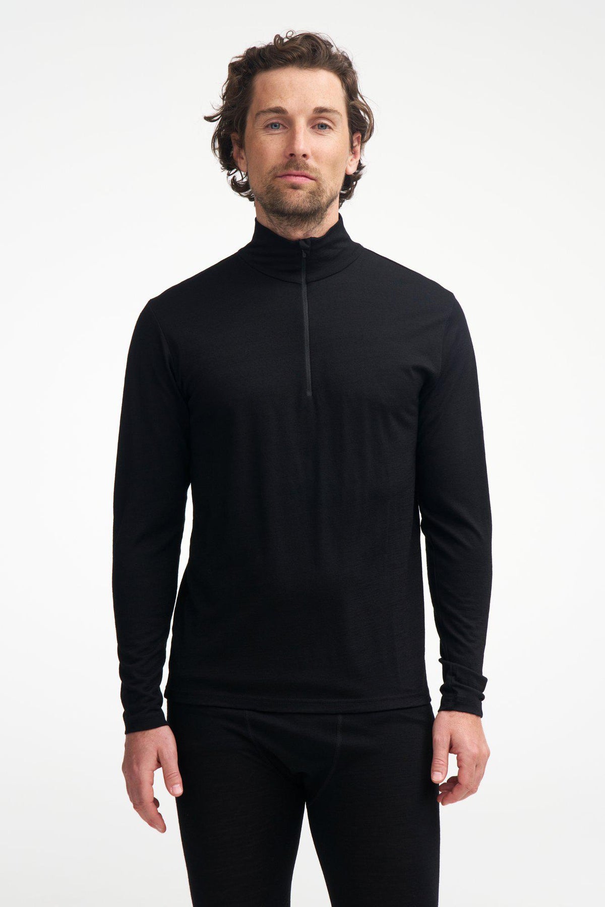 UNDERWOOL SONNY HALF ZIP, 100% EXTRA FINE MERINOULL — BLACK