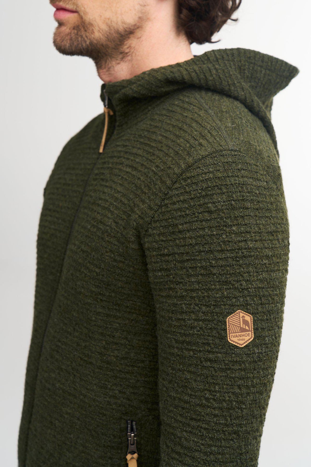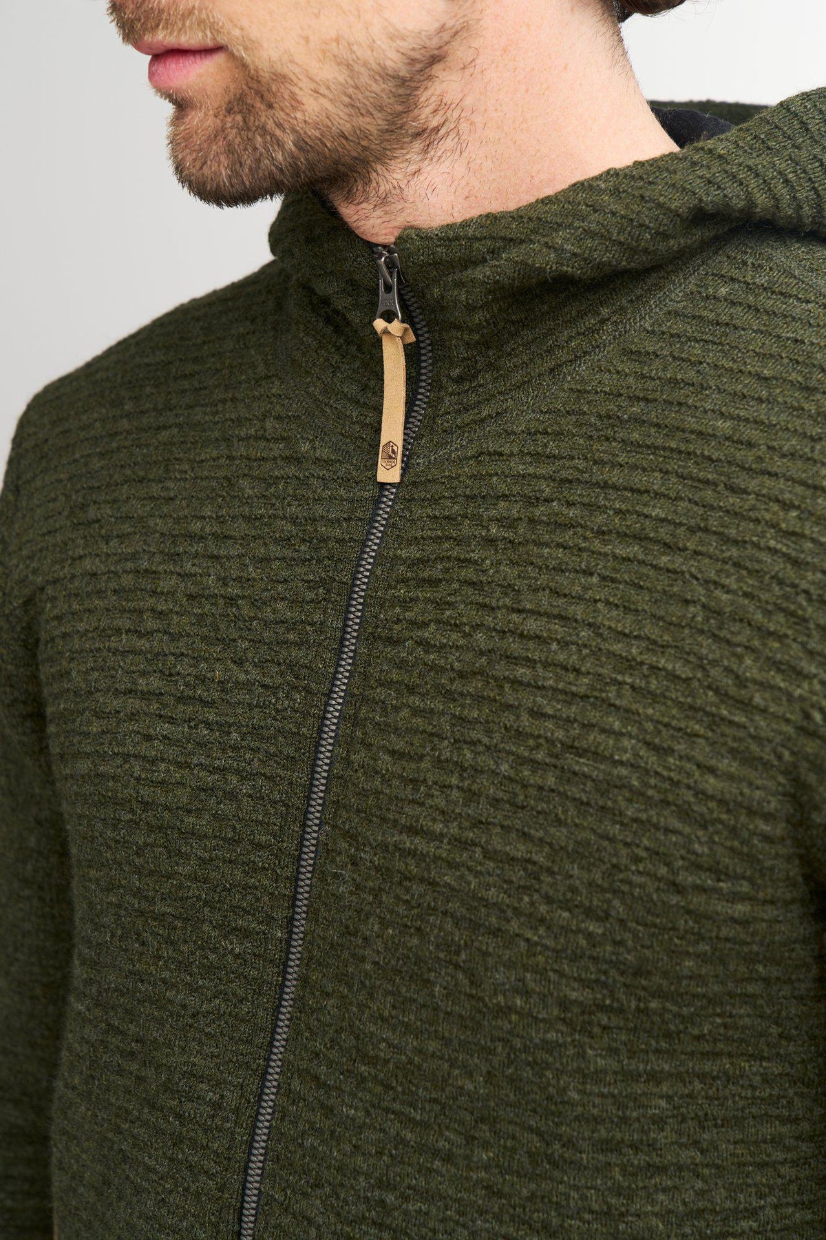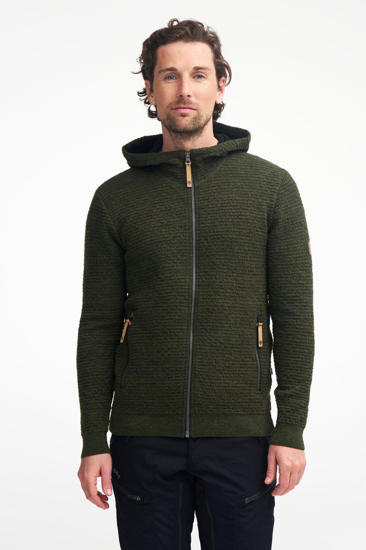 Morel Hood male är en härlig hood-tröja med hel dragkedja framtill samt dragkedja i sidfickor. Plagget är sticket i en för säsongen helt nyutvecklad 3D-stickning där stickade luftfickor både ger design och funktion. Materialet är en mix av ull och TENCEL® där ullen ligger som yttersta lager och TENCEL® in mot kroppen. Den avvikande färgen på TENCEL®-garnet ger en schyst designeffekt. Nertill i ärmavslut och body återfinns en ribbstickad mudd. Perfekta tröjan för den som gillar att vara aktiv eller varför inte bara använda till vardags.
