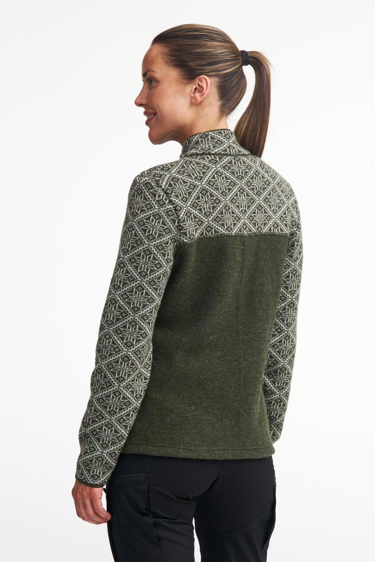 Fantastisk ulljacka i 100% ull. Mönsterstickat ok och ärmar i kombination med vår unika filtade ull nertill i bodyn. Hel dragkedja framtill och sidfickor med dragkedja. Liten smakfull märkning nertill vänster ärm. Modellen är 174 cm lång och bär storlek 38.