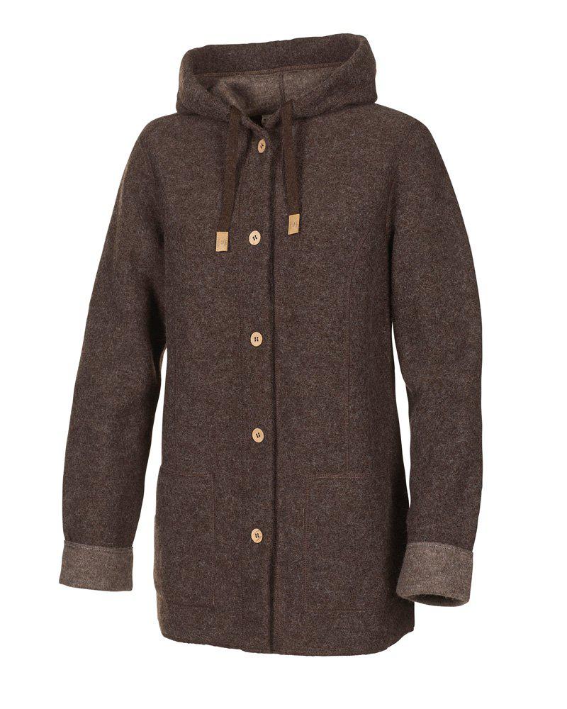 Den perfekta vårjackan kommer här! Smidig att slänga på sig och passar lika bra under skogspromenaden som på shoppingturen på stan. Stickad i 100% ull, där ullen är helt obehandlad och fri från kemikalier och färgämnen. Ulljackan har huva och generösa sidfickor. Knapparna framtill är gjorda av kokosnötskal, där varje knapp blir unik i färg och struktur. Logo badge i jacon upptill på vänster ärm. Modellen är 174 cm lång och bär storlek 38.