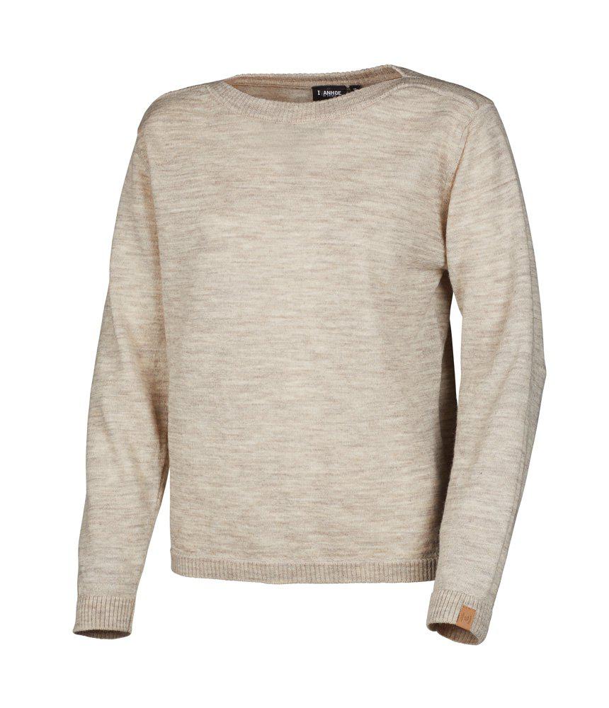 Tunnstickad tröja med snygg båthals. Bakstycket är något längre än framstycket, vilket ger ett schyst uttryck. Litet logomärke i jacron nertill på vänster ärm. Stickad i 100% obehandlad och ofärgad ull, helt utan tillsatser av kemikalier och färgämnen. Modellen är 174 cm lång och bär storlek 38.