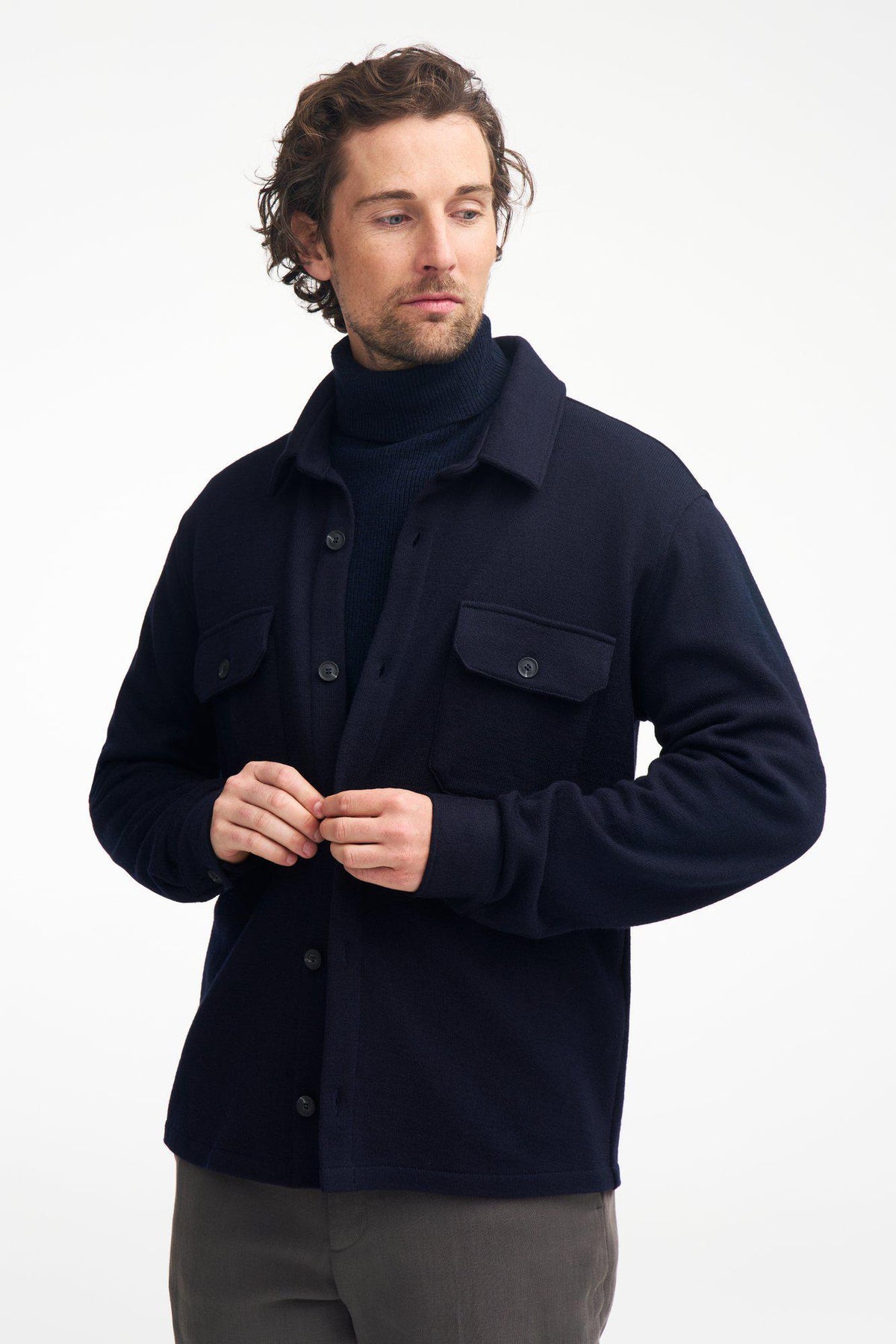 En mjuk och skön overshirt i 100% filtad merinoull. Snygga och stilsäkra detaljer i kombination med högkvalitativt material ger ett lyxigt uttryck. Knapparna framtill är tillverkade av återvunnet papper. Supersnygg att bära i kombiantion med GY Grimstorp. Modellen är 185 cm lång och bär storlek M.