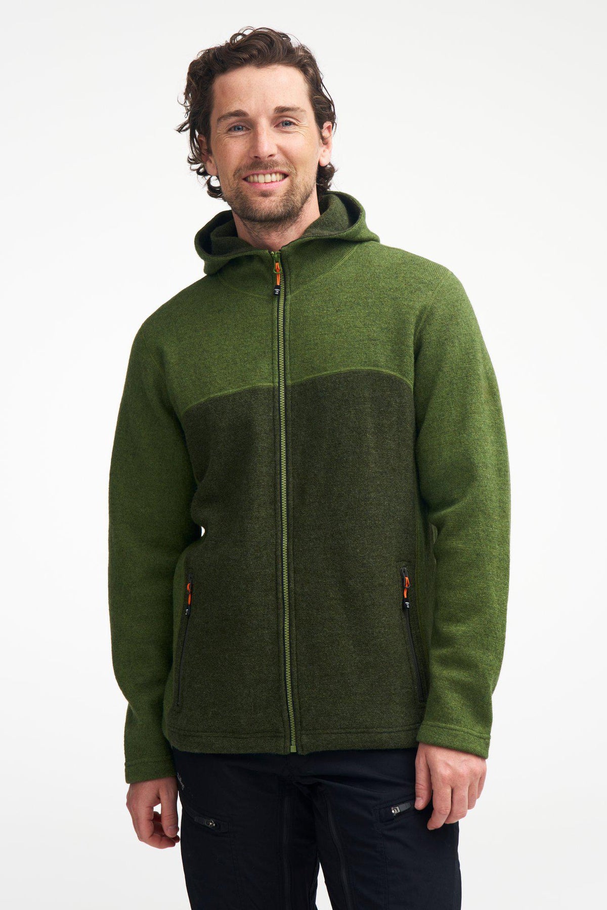 Ron Hood - en fantastisk ullhoodie med sportigt uttryck, där vi använder båda sidorna av det pläterade materialet för extra designeffekt. Hel dragkedja framtill och dragkedja i sidfickorna. Accentfärger i brodyr och zip pullers. En perfekt och lättburen jacka i mellansäsongerna. Stickad hos oss i Gällstad. Perfekta tröjan för de aktiva.