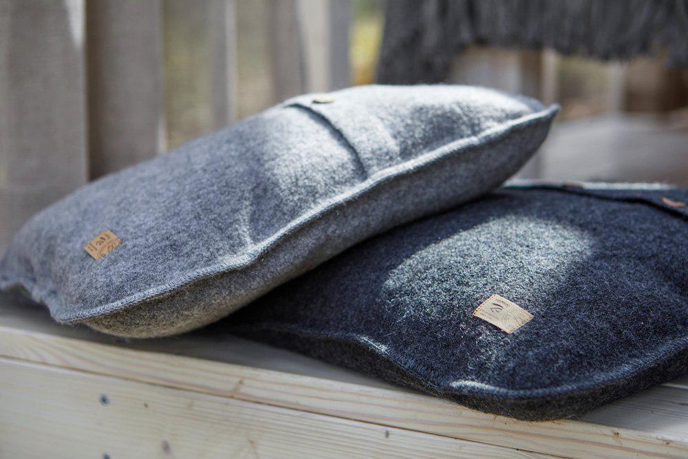 Pillowcase är ett kuddfodral i filtad ullkvalitet, 100% ull, där garnet både är Bluesign©-certifierat och ullen är mulesingfri. Tre knappar gjorda av kokosnötskal är både funktionella och ett designelement, då varje knapp är unik med sin egen nyans och struktur. Kuddfodralet mäter 50x50cm och finns i alltid i två klassiska grå nyanser.