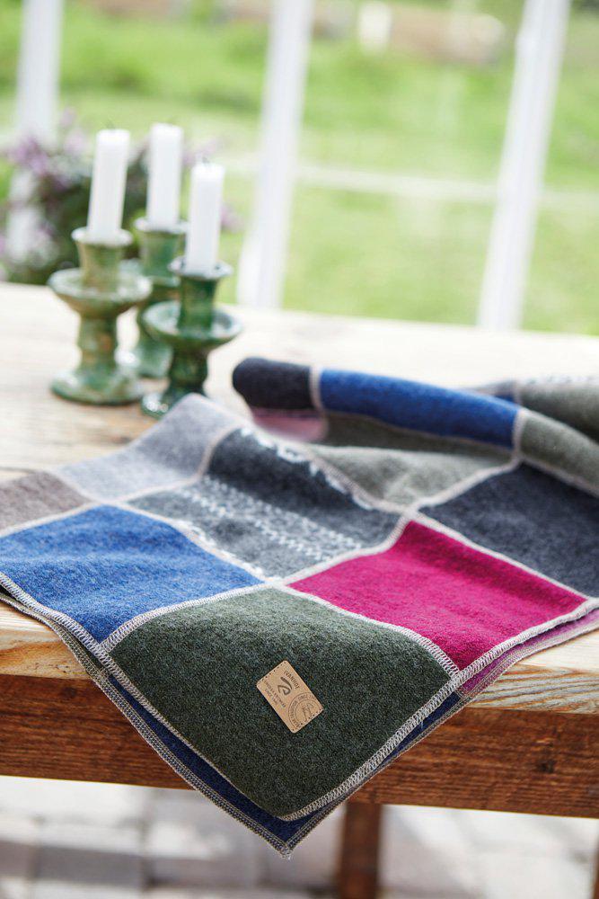 Patchwork Blanket är en vacker och unik ullpläd där vi tar vara på och förädlar ulltyger som blivit över i vår produktion. Tyger och mönster förädlas och kombineras ihop i vackra plädar i lappteknik. Filtat ullmaterial i 100% ull där garnet både är Bluesign©-certifierat och ullen är mulesingfri. Denna modell finns även i en mindre storlek 60 x 70cm.